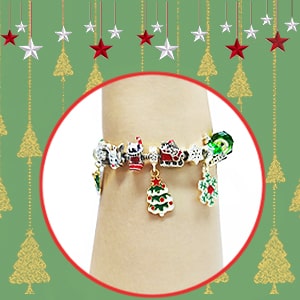 Una opción estupenda para las niñas que disfrutan haciendo sus propias joyas. Esta pulsera sirve como actividad de manualidades durante las fiestas, ya que permite a las niñas mezclar y combinar cuentas y abalorios para personalizar su propia y única pulsera de Navidad.