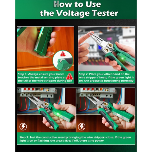 ⚡ Probador de voltaje incorporado: verifique circuitos activos al instante sin soltar la herramienta