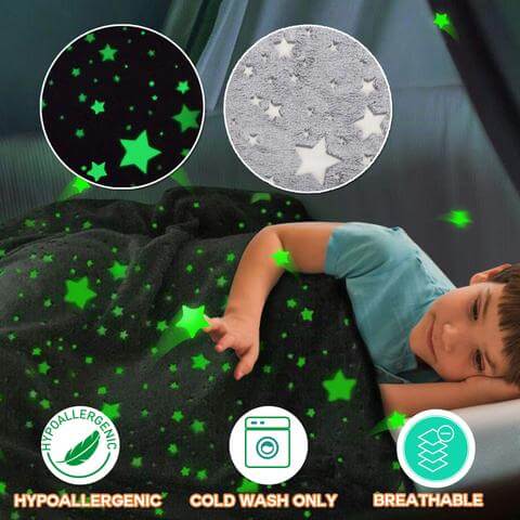 ¡Tu compañero de dulces sueños! No hay nada mejor para tener dulces sueños que una manta brillante que te haga sentir como si estuvieras durmiendo en las nubes. Cura el miedo a la oscuridad de los más pequeños con esta manta brillante y ¡tranquilízalos mientras duermen por la noche!