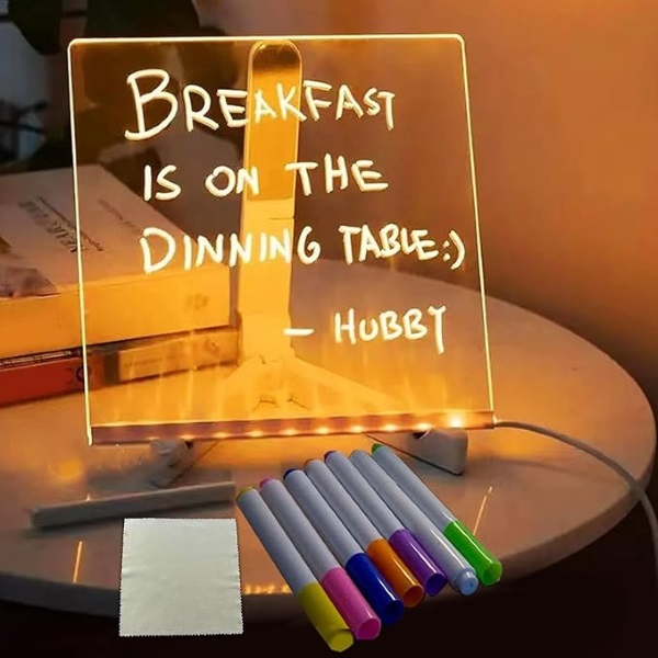 ¿Te cuesta encontrar la forma de dejar mensajes cariñosos a tu familia? Nuestras pizarras luminosas no sólo te permiten dejar mensajes cariñosos a tus hijos o seres queridos, sino que también ofrecen la posibilidad de escribir mensajes y crear dibujos. Ya sea un recordatorio para que tengan un buen día o un bonito garabato para alegrar su estado de ánimo, estos tableros ofrecen una forma creativa e interactiva de comunicarse y expresar afecto. Deja que tu amor brille con luz propia con nuestros tableros de mensajes luminosos.