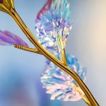 Cada rosa está elaborada con un recubrimiento iridiscente y holográfico que brilla hermosamente a la luz, creando un destello galáctico simplemente hipnotizante.