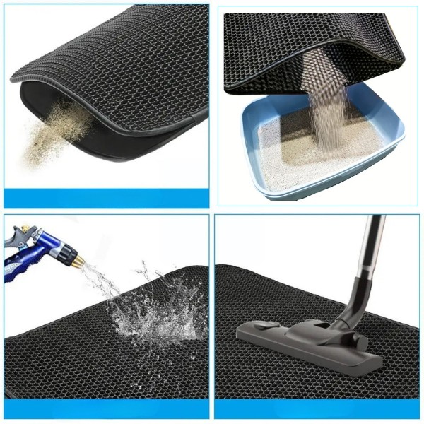🐾 Coloca la alfombrilla junto a la caja de arena para gatos.