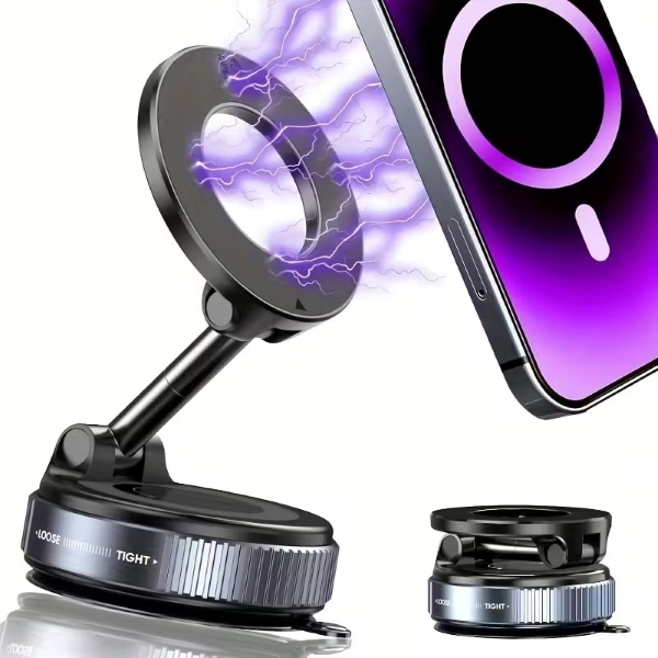 El soporte para teléfono MAGHOLDZ utiliza una potente sujeción al vacío que se intensifica con las vibraciones, manteniendo tu teléfono firmemente sujeto sobre superficies lisas sin dejar marcas en el vidrio, el salpicadero o el escritorio.